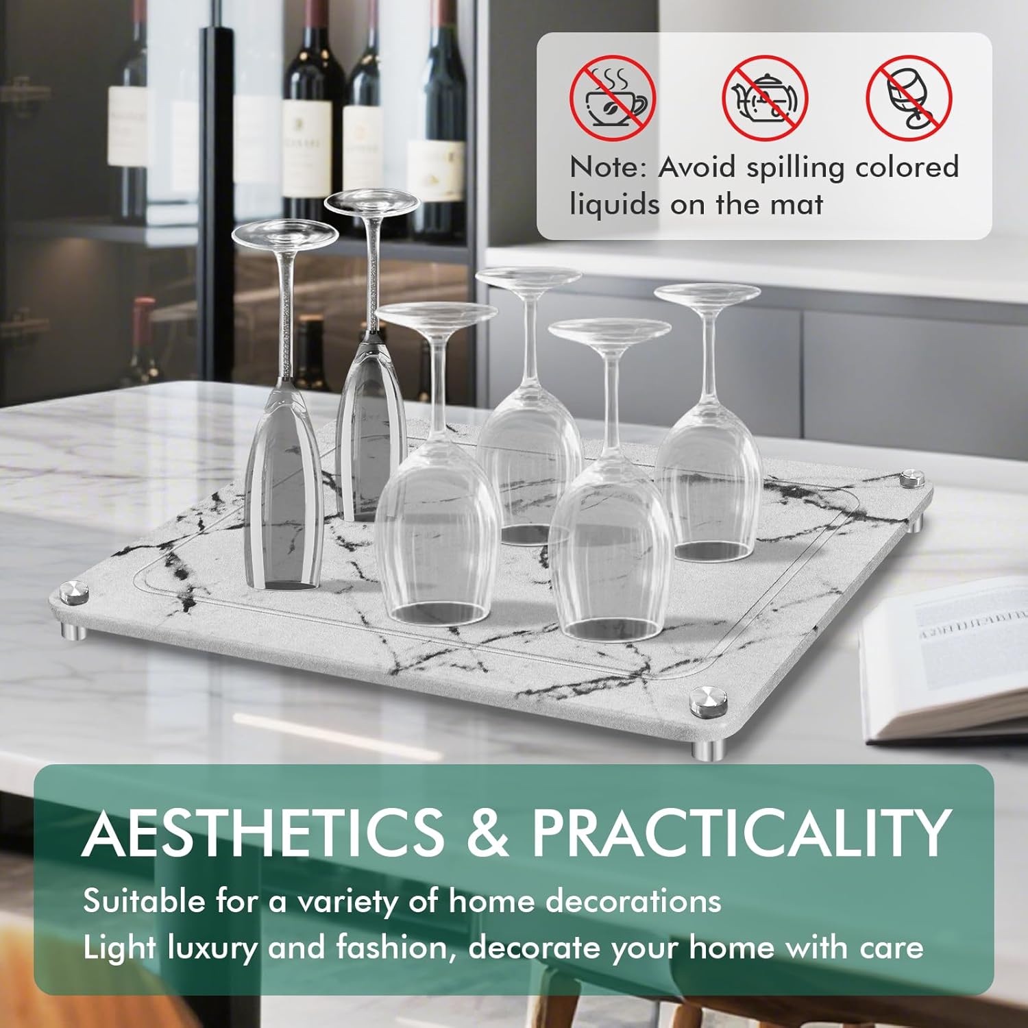 - 【Raised Design - Stainless Steel Legs】: Each dish drying pad is equipped with 4 screw legs and pads, which can lift the plate drying stone from the counter. This increased airflow is designed to prevent moisture accumulation in the beneath, ensuring optimal airflow for faster ventilation. It isolates the desktop from contact with the counter drying mat, keeping the desktop drier, cleaner and more tidy. Tool free assembly makes the design simple, and anti-slip feet keep everything stable and smooth.