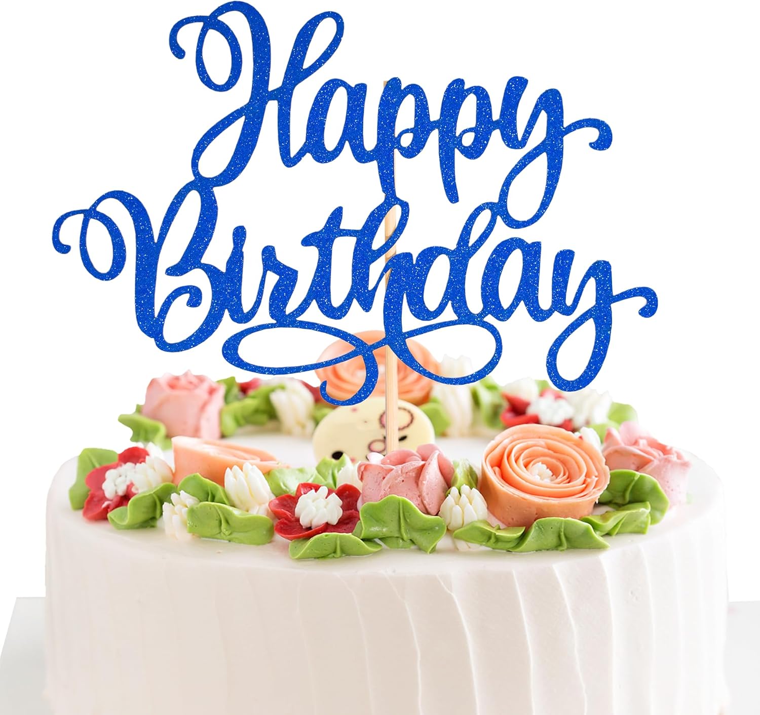 Happy Birthday Cake Toppers 9 Inch Glitter Happy Birthday Cake Pick for Birthday Anniversary Theme Party Cake Decorations Supplies - Dark Blue