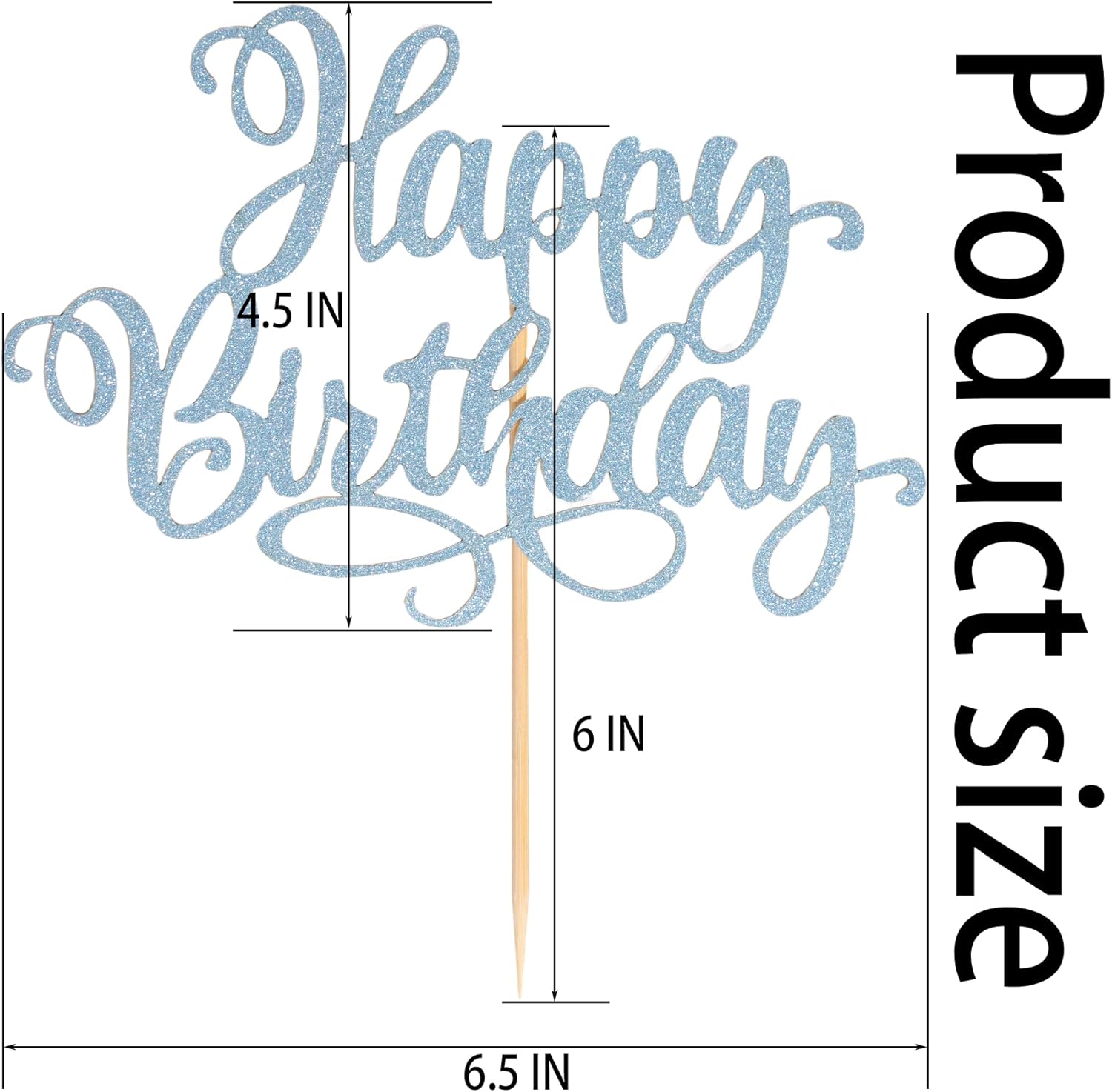 Happy Birthday Cake Toppers 9 Inch Glitter Happy Birthday Cake Pick for Birthday Anniversary Theme Party Cake Decorations Supplies - Litht Blue