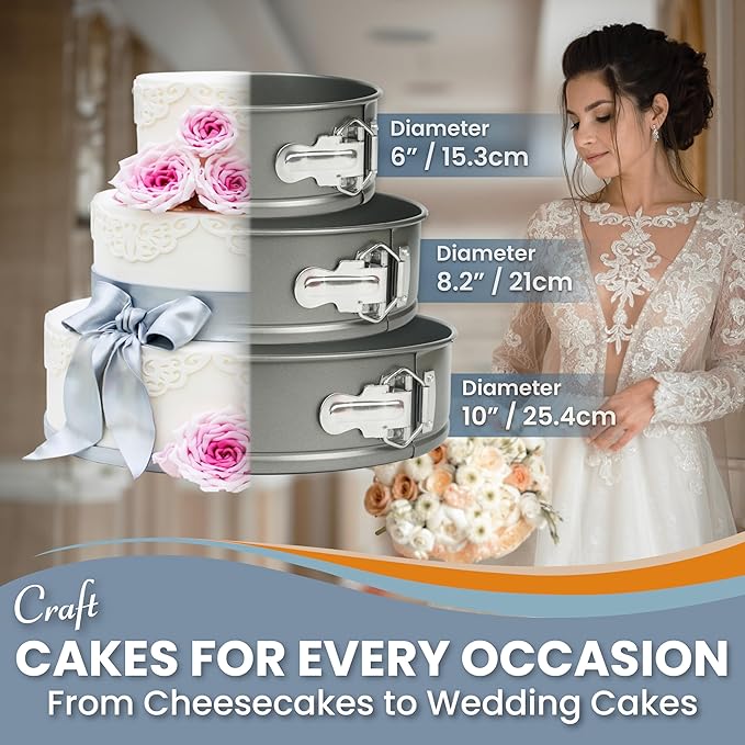 - BAKE ALL YOUR FAVORITES WITH ONE SET – From birthdays to Sunday baking, this 3-piece springform cake pans set is perfect for cheesecakes, layered cakes, or savory quiches. With multiple sizes, you're ready for holidays, family dinners, or everyday moments.