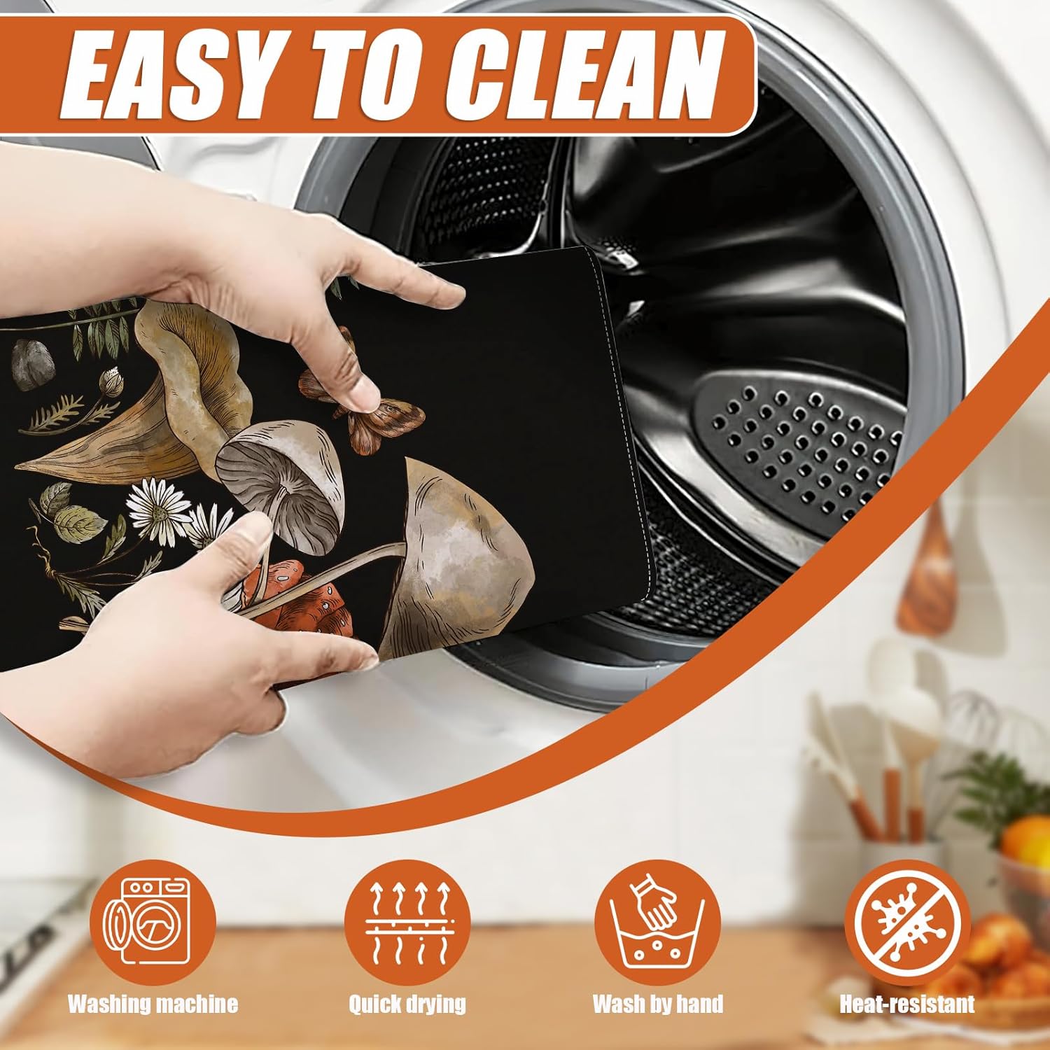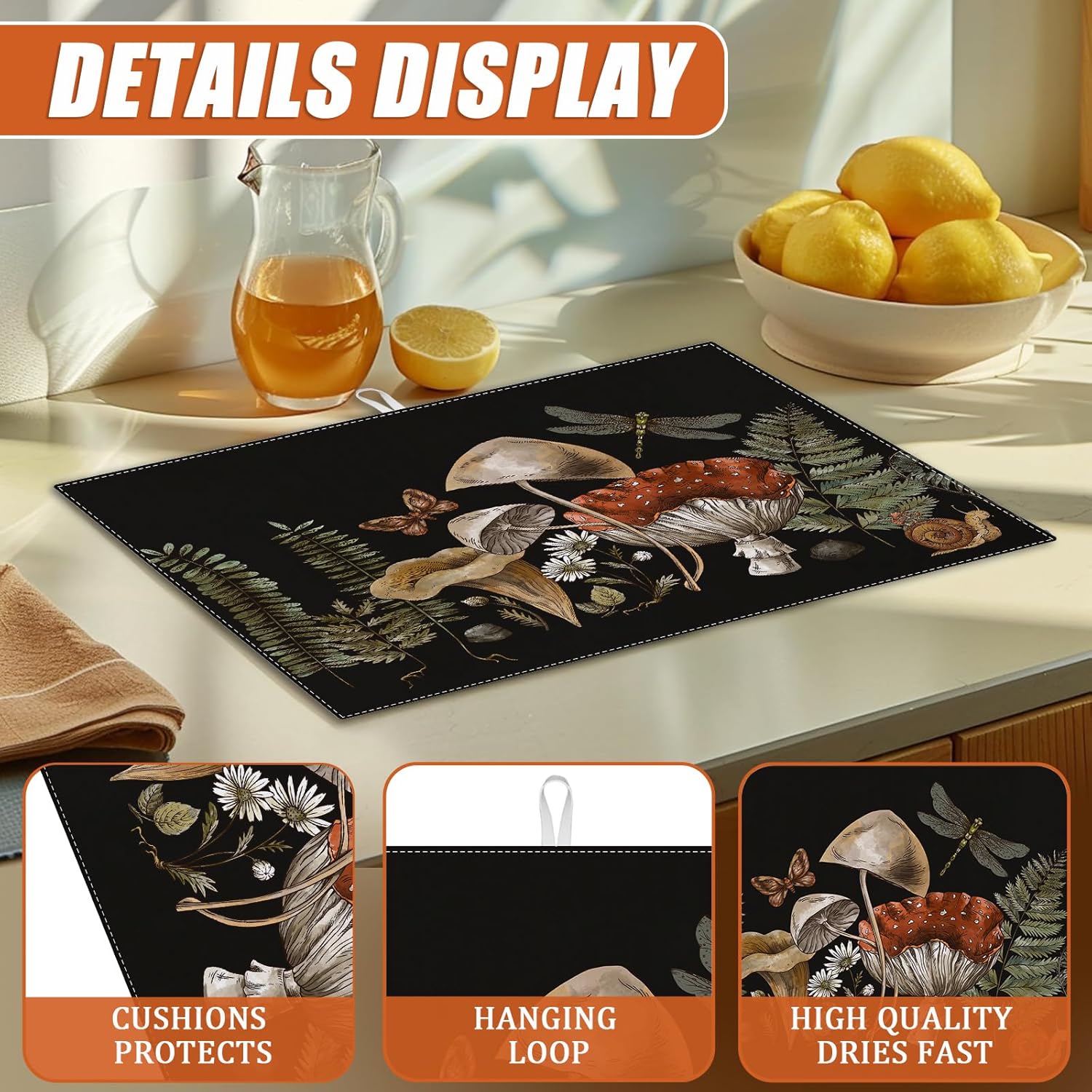 Vintage Mushroom Dish Drying Mat for Kitchen Counter Microfiber Absorbent Dish Kitchen Drying Mat Draining Reusable Washable for Dishes/Utensils/Counterto