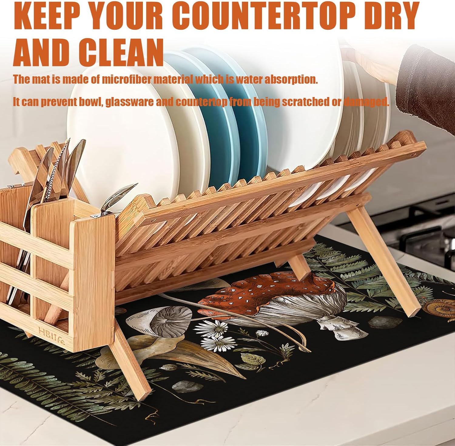 - 【Easy to Clean】The utensil drying mat can be cleaned by hand or machine to remove stains, the kitchen utensil drying mat to dry quickly without a machine. HD printed suede has excellent color lock, does not fade and can be reused many times.