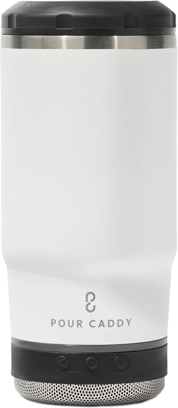 Chill & Brew, Insulated Can & Bottle Holder, Bluetooth Cup with Speaker, Fits 12 oz Cans, Skinny Cans, Most Bottles & Cold Drinks, White