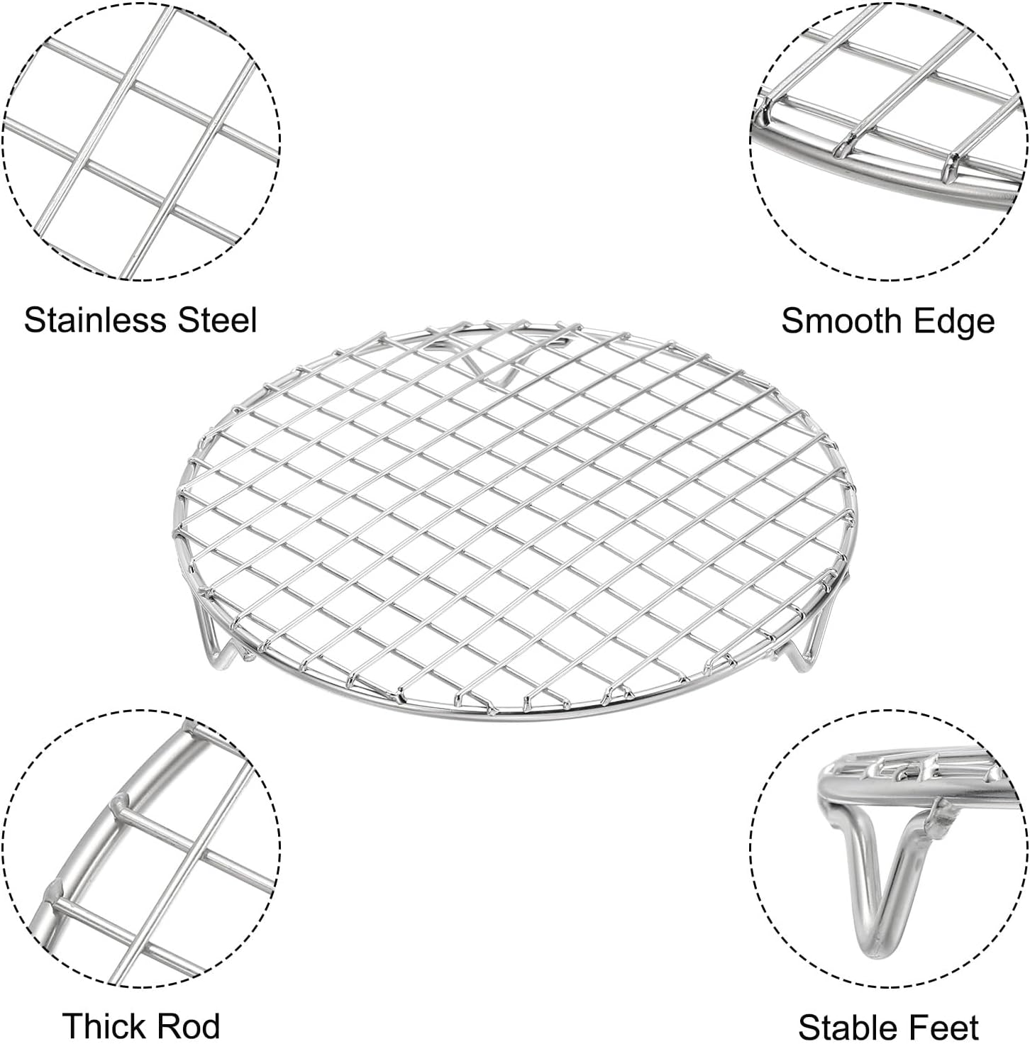 uxcell 2 Pcs Round Cooking Rack with Legs, Dia 7.1 Inch 304 Stainless Steel Barbecue Grill for Cooking Baking Barbecue Air Fryer Racks, Silver