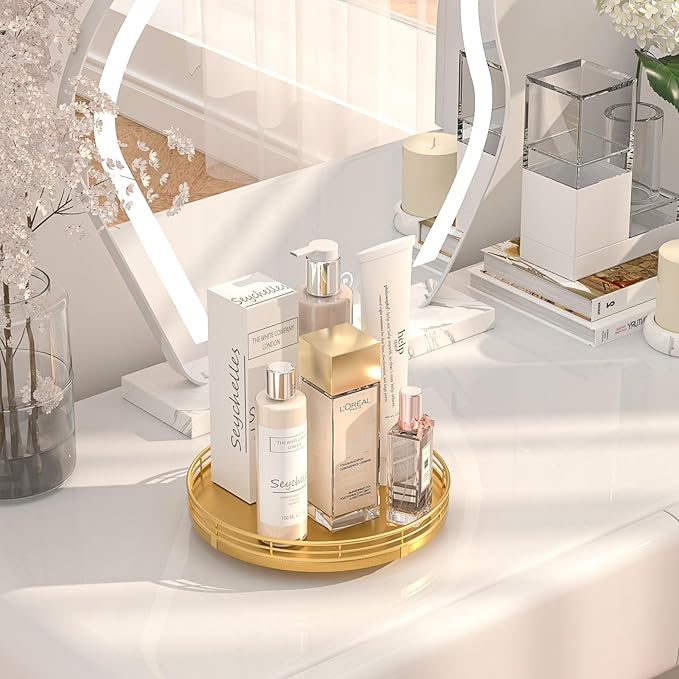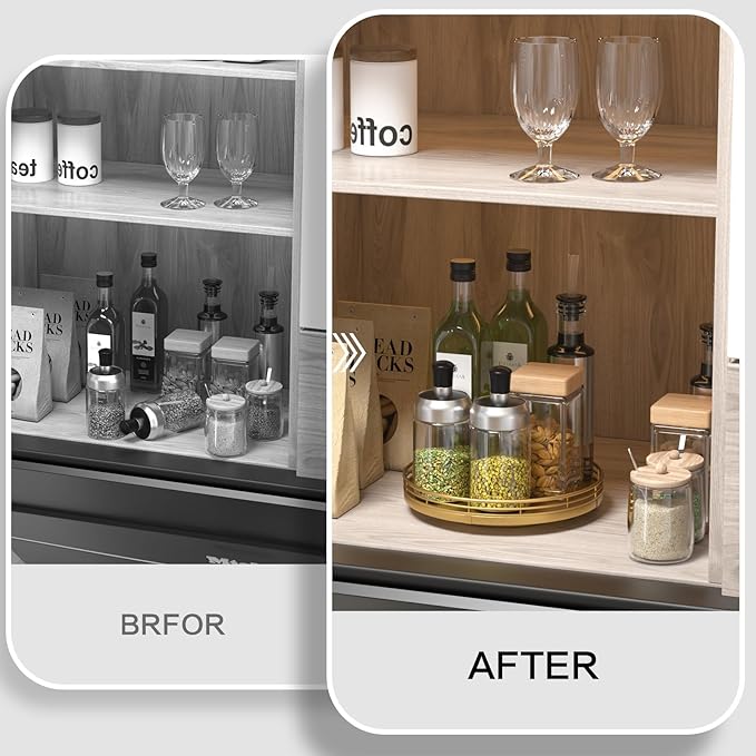 - Thoughtful Design: The turntable gold tray features a smooth and silent 360°rotation; Bottom slip-resistant pads for stability and protect your countertop from scratches; Raised edges on each organizer tray to keep items from falling out; Easy to use, no installation required