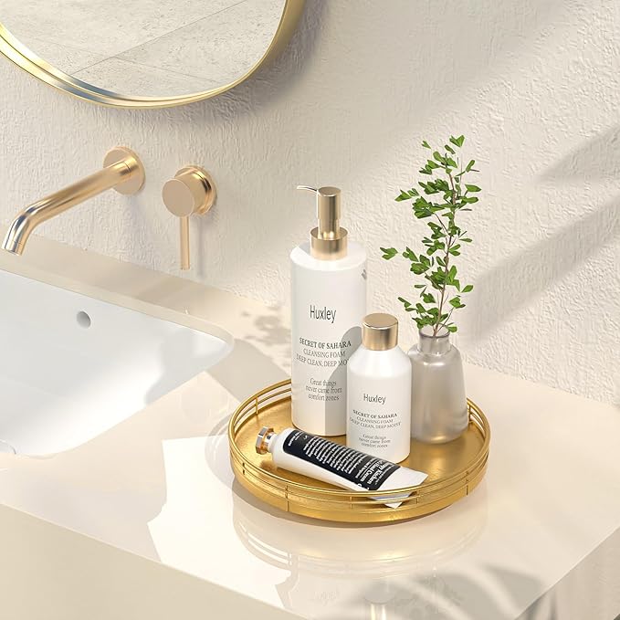 - Multi-Purpose Usage: Perfect for a wide range of occasions and spaces. Whether used as a centerpiece table decorations, a vanity tray in your bathroom, or an organizer on your kitchen, this versatile gold round tray adapts to your needs in any room