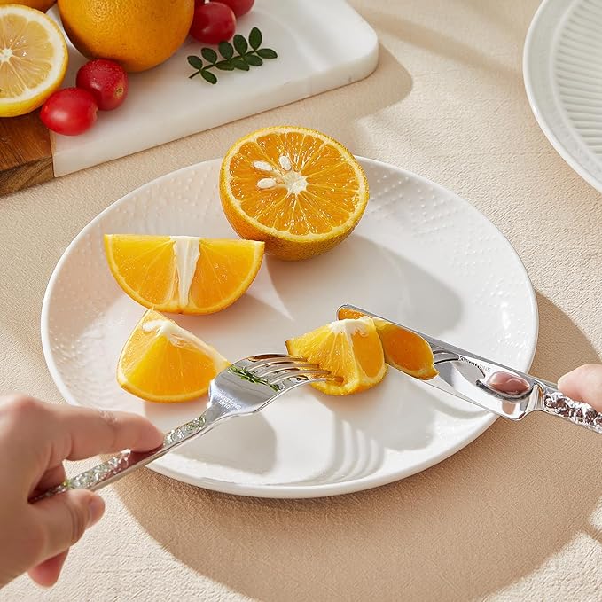 - STONE TEXTURE HAMMERED STYLE:Handles are decorated with a stone-like texture. Inspired by rock textures, hammering turns them into handle decor. Perfect for both elegant fine dining and modern minimalist meals, adding a touch of ritual to every dining experience.