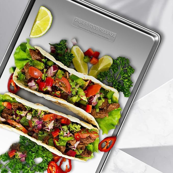 - Premium Stainless Steel Baking Set – High-quality 18/16/12-inch pans for baking cookies, cakes, bread, and even searing steaks—perfect for versatile cooking.