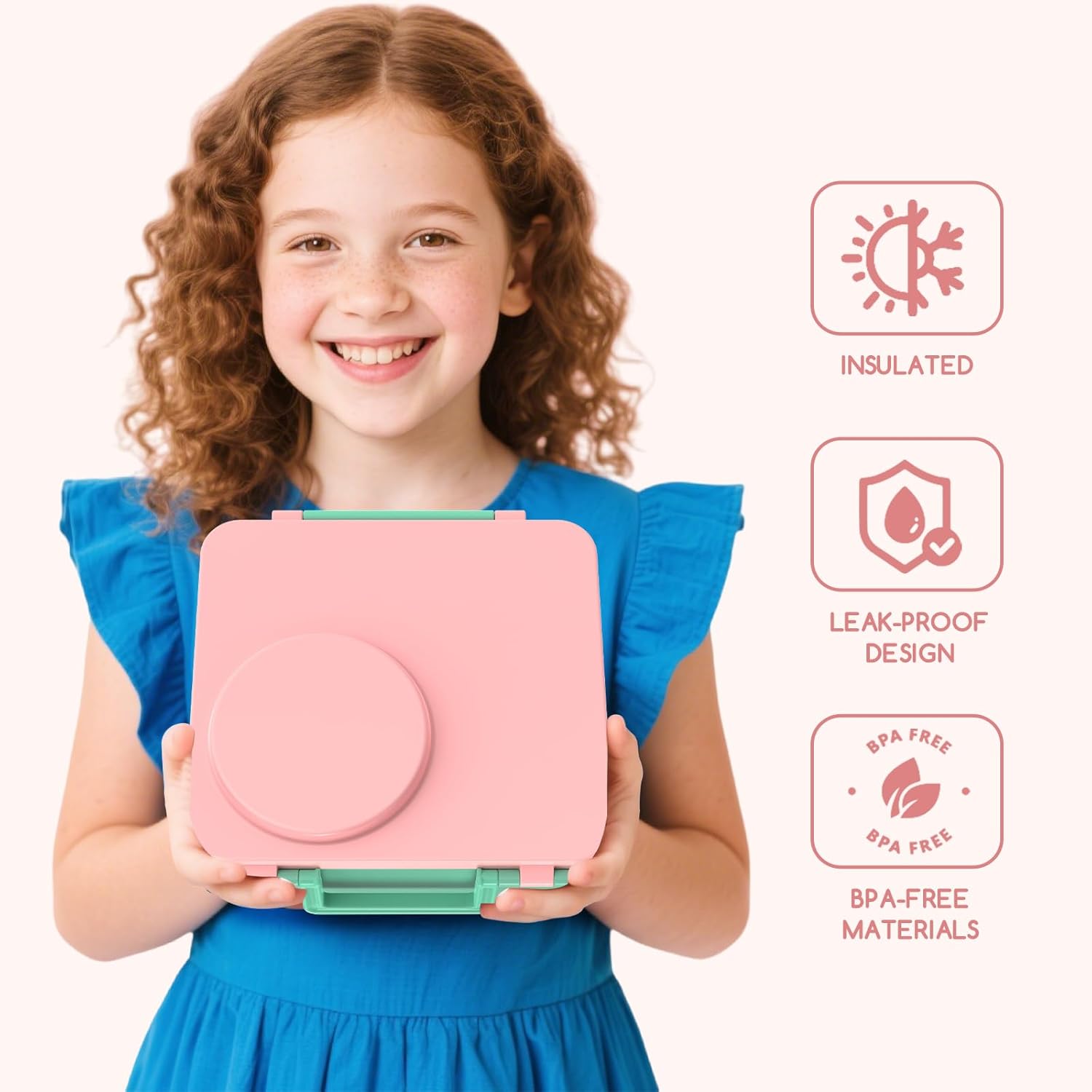 Bento Box for Kids - Leak-Proof Lunch Box with Insulated Thermos Food Jar - 4 Compartments, 1 Removable Divider, 1Spoon, 1 Fork - Dishwasher Safe, BPA-Free (Light pink)