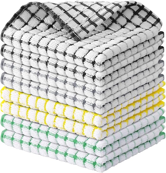 Kitinjoy Cotton 8 Pack Terry Kitchen Dish Cloths, 12 x 12 Inches Super Soft and Absorbent Dish Rags, Quick Drying Dish Towels for Washing Dishes, Multi-Colored