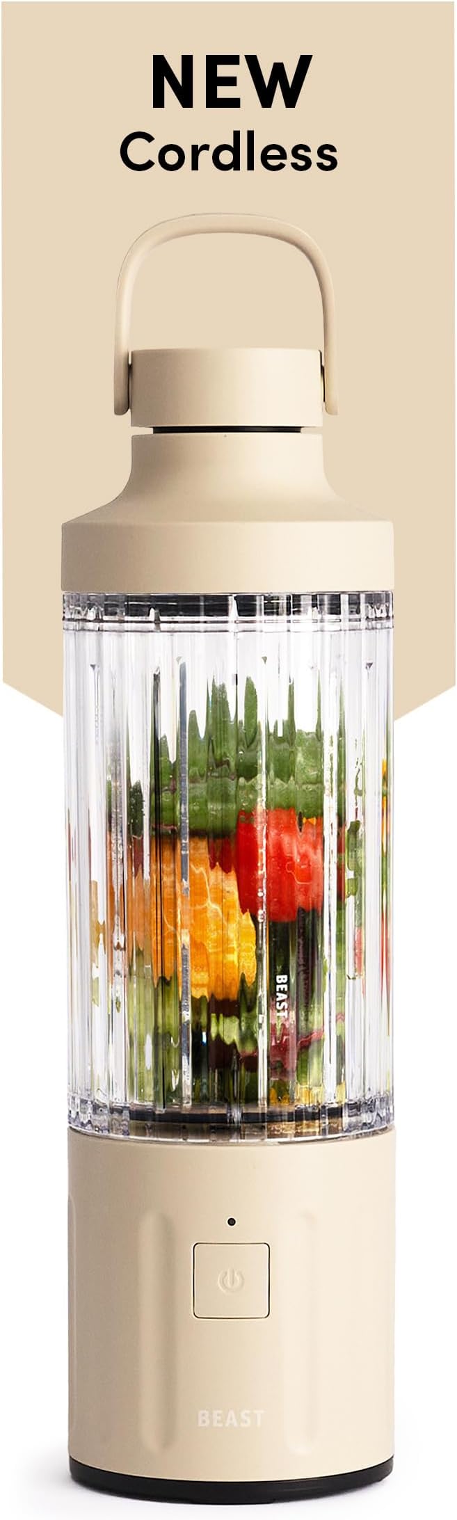 Beast GO Cordless, Premium Portable Blender for Shakes & Smoothies, 22oz Blending Vessel, Blends Ice & Frozen Fruit, Rechargeable USB-C Battery, Drinking Lid and Straw System (Sand)