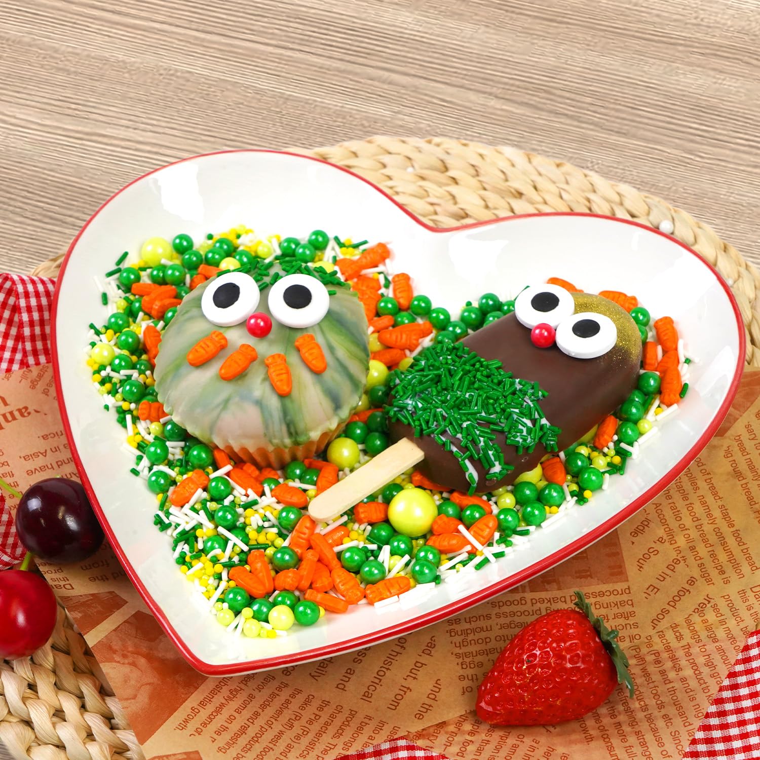 - Our Easter Green Sprinkles are a mix of sugar carrot candies and colorful jimmies nonpareils. They are perfect for adorning Easter-themed cakes. These Edible Easter Sprinkles can be used to decorate cupcakes, cakes, donuts, cookies, ice cream, and waffles, adding that extra dash of festivity.