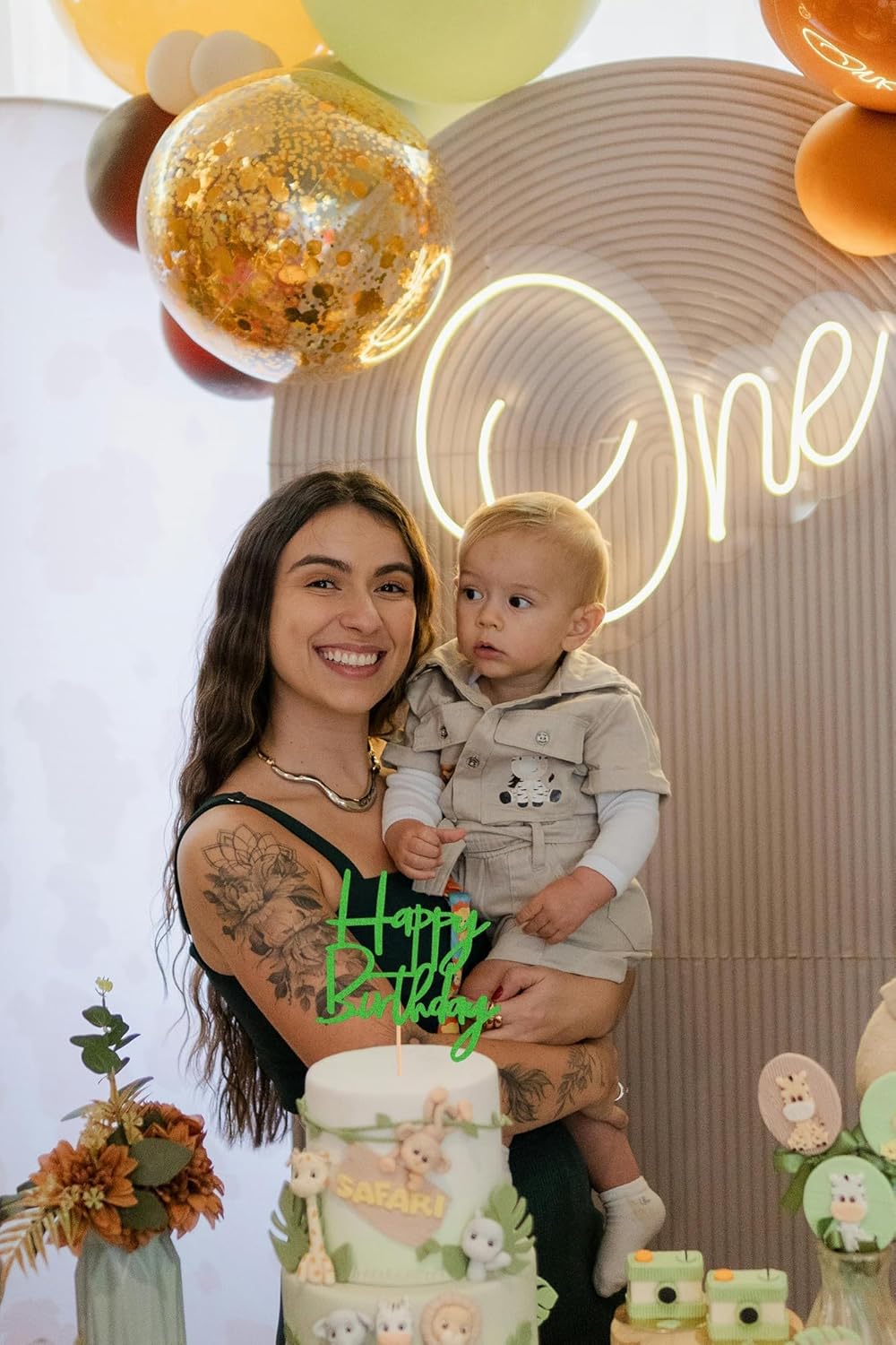 Happy Birthday Cake Topper - Glitter Green Birthday Cake Top Decorations (Green)