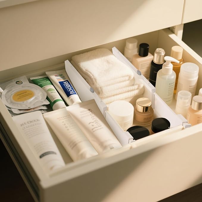 - [Multipurpose]: This drawer organizer divider is designed for any drawer of your house, kitchen and office, ideal for organizing clothes, baby clothes, underwear, socks, kitchen utensils, office supplies, makeup and bathroom essentials, keeping the items organized and visible, helps you find what you need instantly