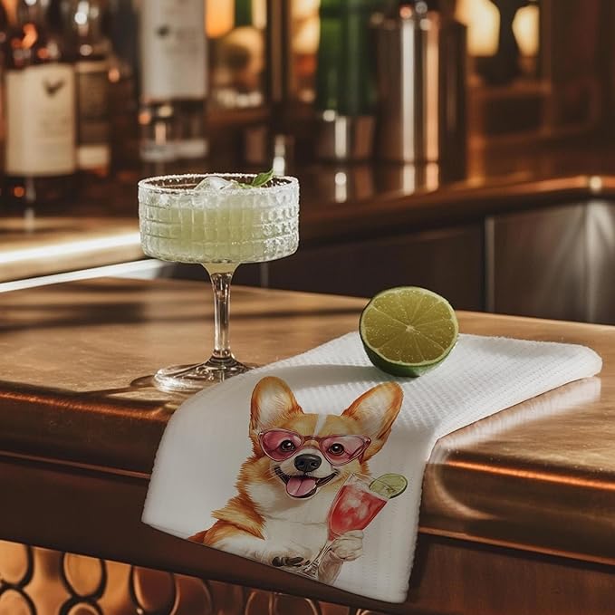 Cabana Bro Corgi Gifts Kitchen Towels, Corgi Gifts for Women Dog Lovers Decorative Hand Towels for Bathroom, Funny Dog Puppy Getting Drunk Cocktail Dish Tea Towels for Kitchen, 16x24 Inch