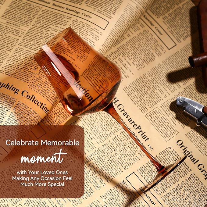 - 3.❤【Hand-Blown High-Quality Craftsmanship】The quality of our brown wine glasses is unmatched, thanks to the meticulous hand-blown techniques of our artisans. You’ll be amazed by their seamless perfection—no visible seams in sight. Additionally, we use only lead-free glass, ensuring you can enjoy your favorite beverages with complete peace of mind. These glasses make the perfect gift for any special occasion, reflecting thoughtfulness and exceptional taste.