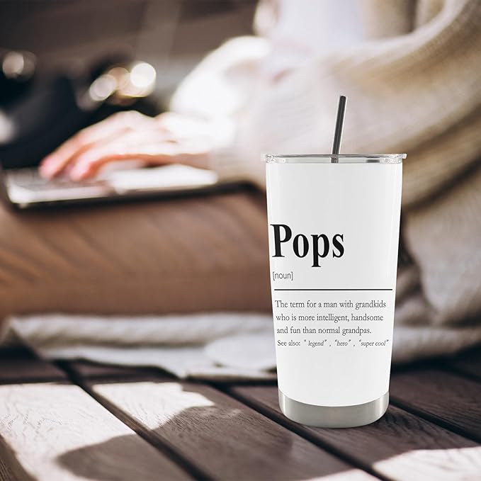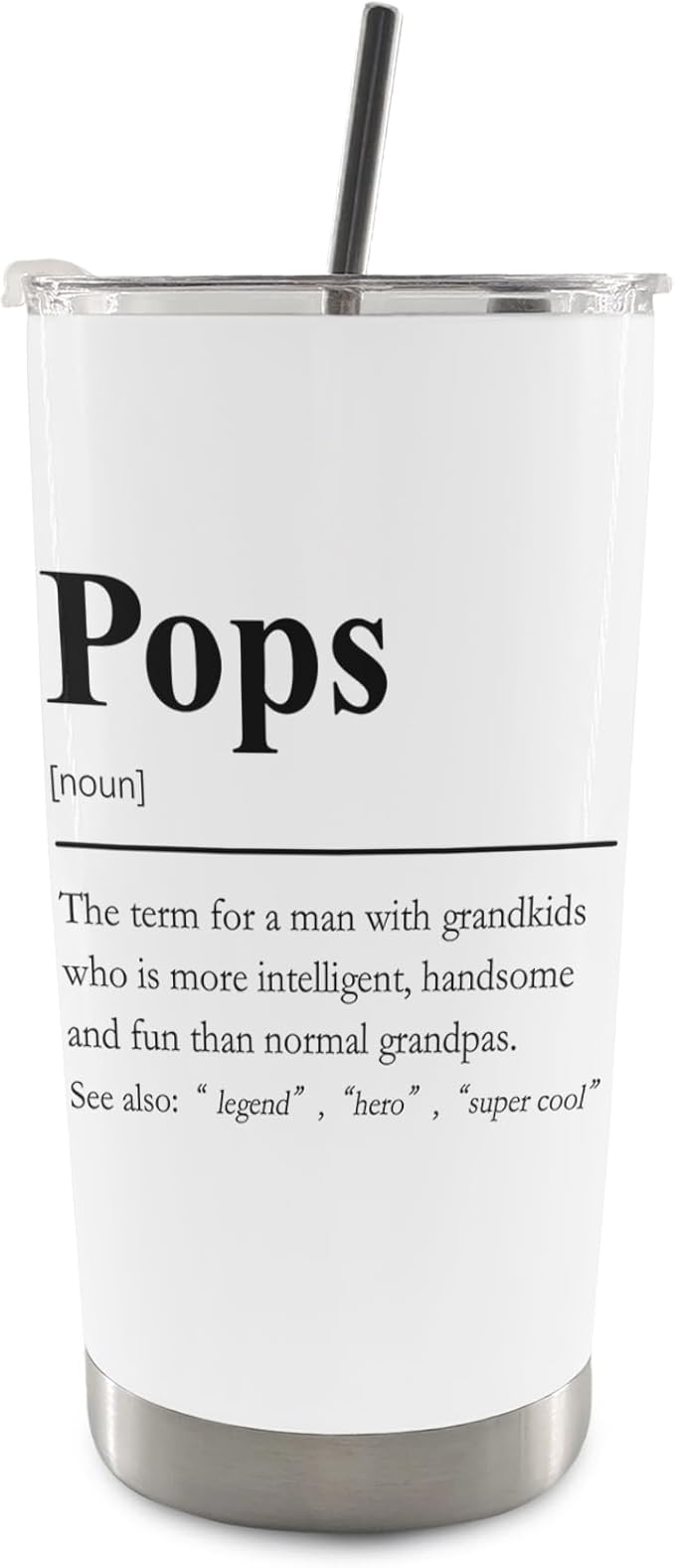 QASHWEY Pops Gifts Coffee Tumbler - Pop Pop Grandpa Gifts from Grandkids Travel Tumbler Coffee Mug, Gift for Pop Grandpa Fathers Day, Pops Definition Stainless Steel Tumblers with Straw and Lid 20 oz