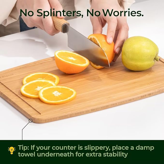 - DISHWASHER-SAFE BAMBOO, FINALLY REAL: Specially engineered bamboo cutting board that withstands heat and water without warping or cracking — created for effortless cleaning and a stress-free cooking routine.