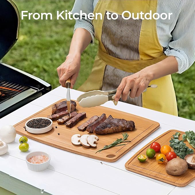 Dishwasher Safe Bamboo Cutting Board, Lightweight & Durable Wood Cutting Board, Reversible with Juice Groove, Easy to Store & Clean, Ideal Kitchen Gift for Home Cooks