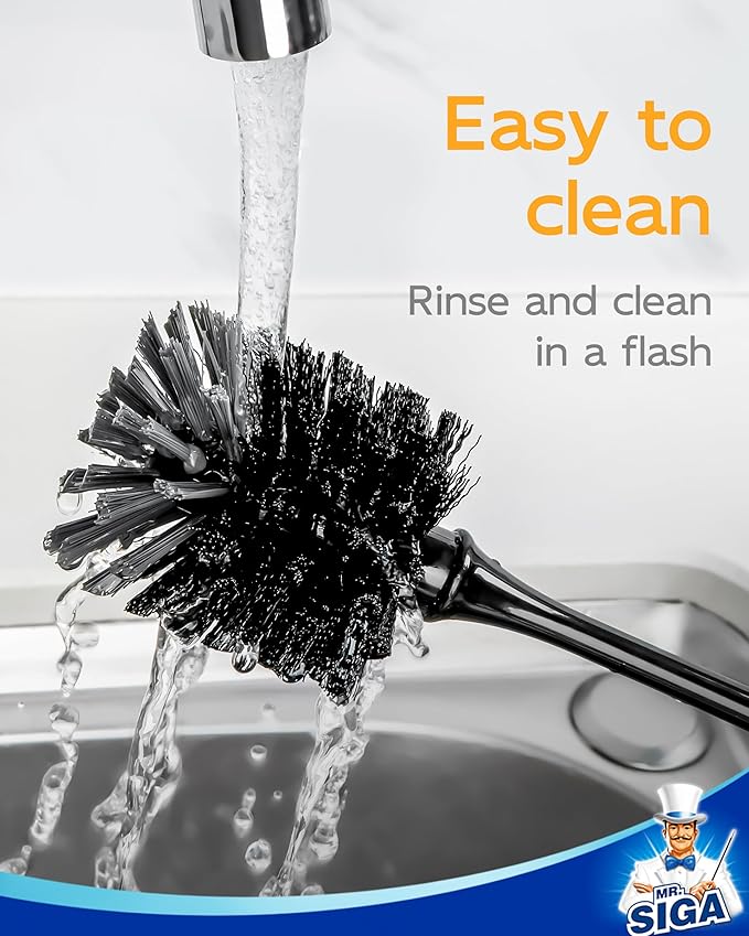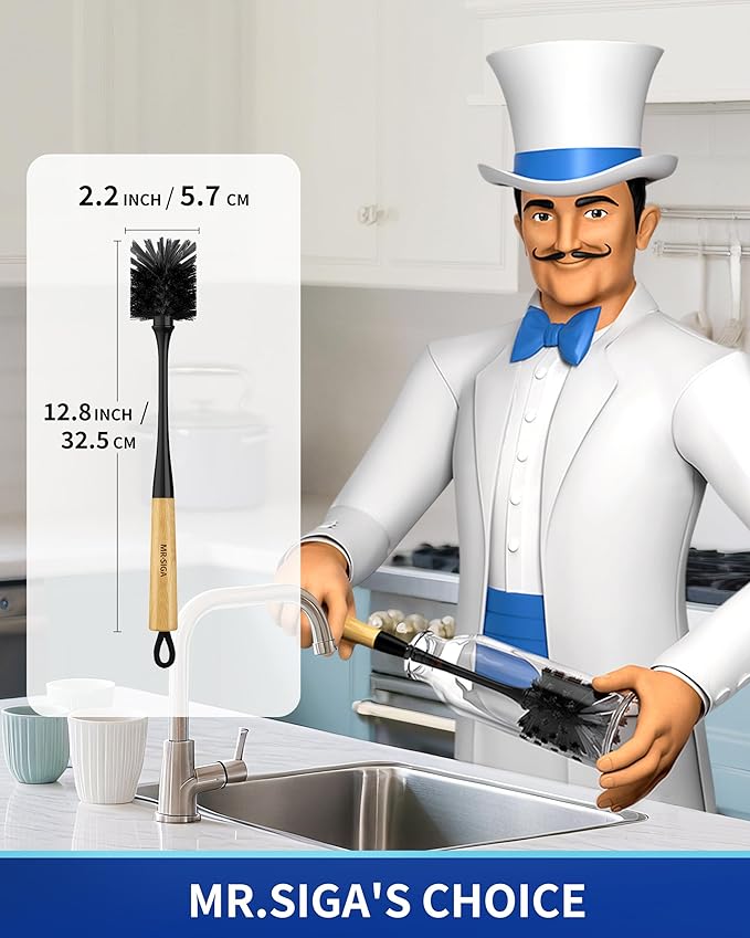 - Dual Function Bristles for Superior Cleaning: MR.SIGA bottle brush features two specialized bristle types for maximum cleaning efficiency. The firm gray bristles at the top power through tough stains and grime in hard to reach areas, while the gentle black bristles clean the inner walls effectively