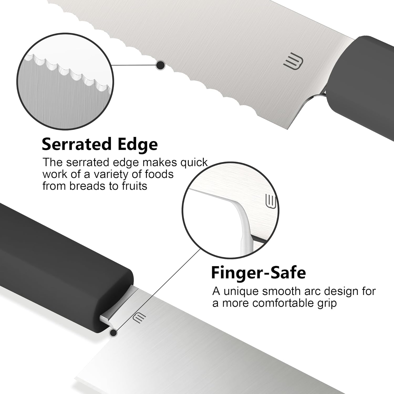 - 【New Kitchen Gift Unboxing Experience】- 6 bright colors to choose from with high-end packaging, let this professional serrated knife surpass ordinary kitchen knives, making it the brightest tool in your kitchen, dedicated to passionate chefs.