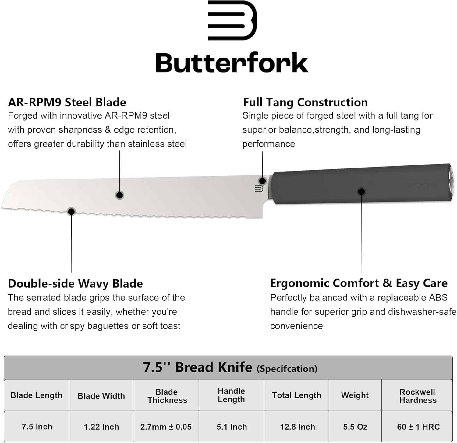 - 【Butterfork Quality Assurance】- You may only need a Purest bread cutting knife to face any bread or even other foods. Every Butterfork knife meets the Sharpness Longevity International Standard (ISO8442-5). We hope that you can always find us when you have problems.