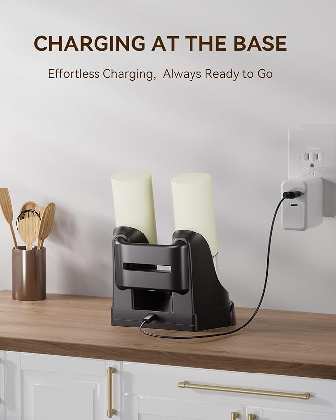 - Dual Charging Base: Our electric salt and pepper grinder set comes with a dual charging base, just place the grinder on top and you can start charging 2 grinders at the same time