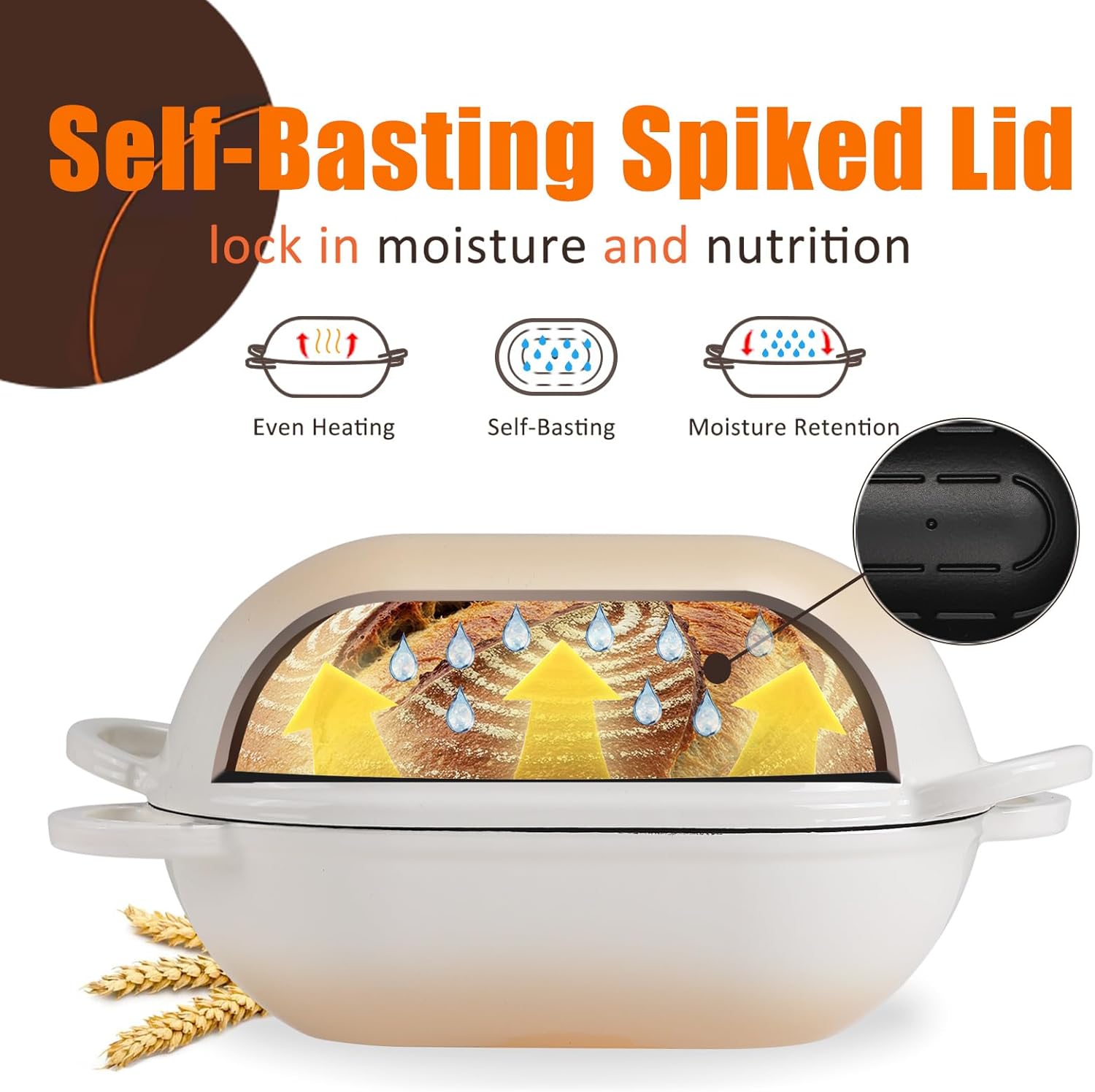 - Even Heat Distribution: This oval bread dutch oven is made of cast iron, which absorbs, retains and distributes heat better than other bakeware, allowing for even heat distribution for consistent baking. From crust to crumb, your loaves will bake with a consistent texture and taste