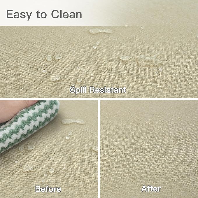 - **Easy to Care: **These tablecloths are spill-proof, water resistant. All liquids bead up for easy cleaning. Machine wash in cold water and tumble dry. Little or no ironing required. DO NOT BLEACH.