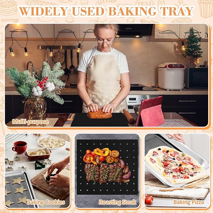 - Non-stick Surface: oven air fryer liners set compatible with Emeril Lagasse has non-stick surface, easy to clean, bread and other food will not stick to it, avoid sticky dough and grease sticking to the baking tray, easy to clean up