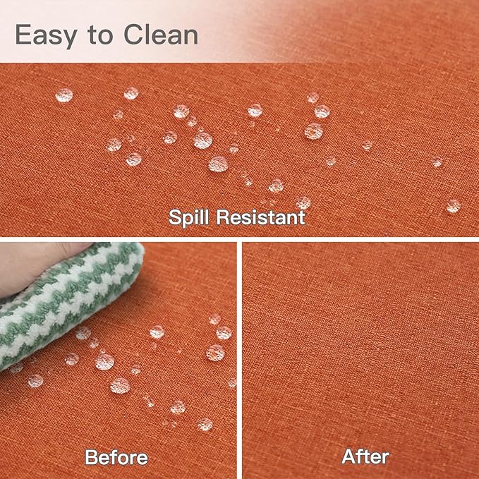 maxmill Rectangular Linen Textured Tablecloth Waterproof Spillproof Wrinkle Free Fall Table Cloth, Dining Room Thanksgiving Decoration, Fabric Table Cover Halloween Tablecloths, 52 x 84 Inch, Rust