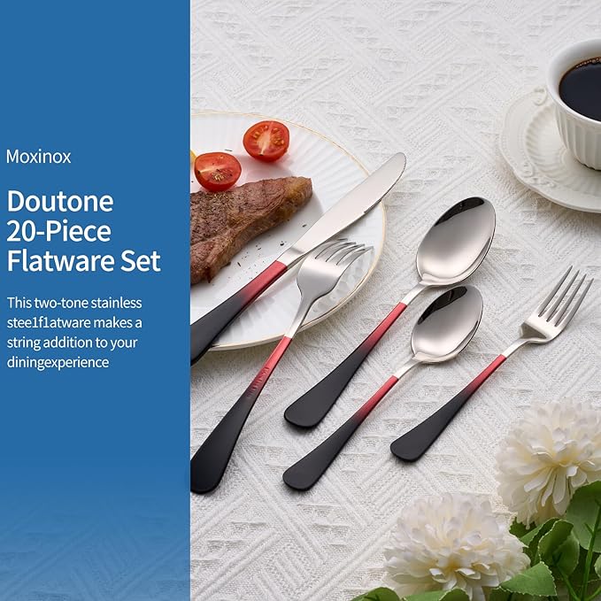 20-Piece Black Red Silverware Set, 18/0 Stainless Steel Colorful Handle Flatware Set,Service for 4,Modern Cutlery Set Includes Dinner Knives Forks Spoons,Mirror Polished,Dishwasher Safe