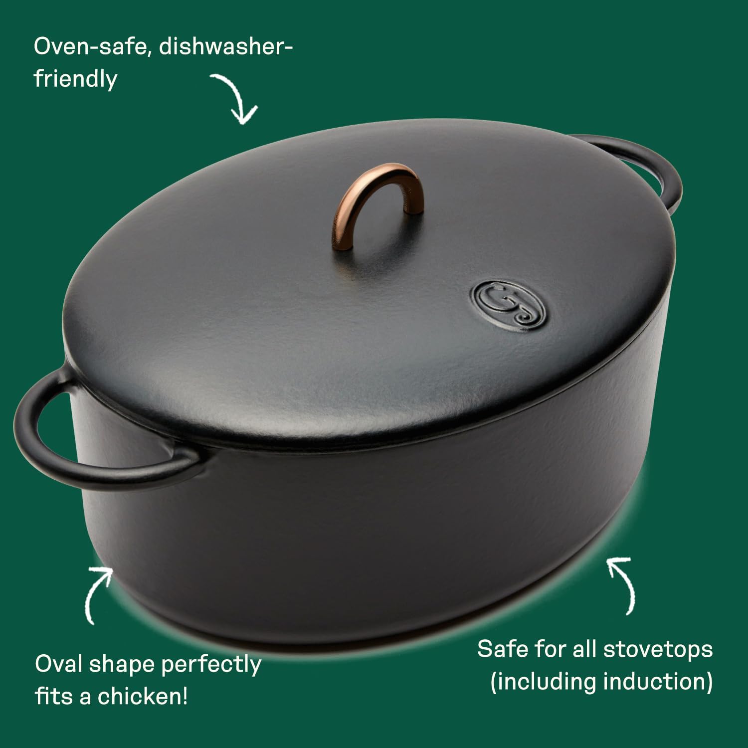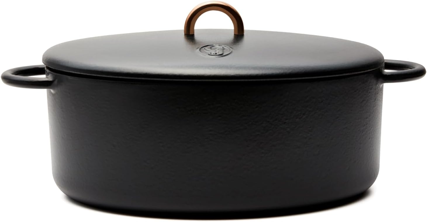 - [SPACIOUS OVAL DESIGN] This 6.75-quart enameled cast iron Dutch oven features our signature oval shape—perfectly sized to fit a whole chicken or a rustic sourdough loaf. It’s a standout dutch oven for bread baking and hearty one-pot meals.