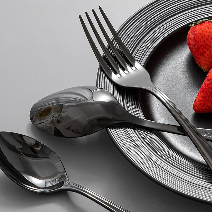 - Comfortable to hold: The utensils is the right size and weight, neither too light nor too heavy. The high quality pure hand polishing process makes the tableware have sleek handle lines and surface without rough edges, making it comfortable to hold, enhancing your dining experience