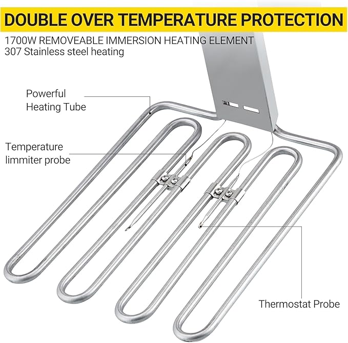 - Quick Heating: This commercial double fryer is equipped with a powerful 1700W heating element in each basin that guaranteed to fry or warm food quickly and maintain oil temperature; This high wattage countertop fryer provides greater heating efficiency for faster cooking and a higher output in a compact countertop footprint