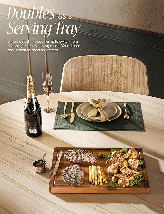 - Integrated Handles: Easy-grip side handles are seamlessly built into the board, offering a comfortable hold when transferring food or serving. The ergonomic placement enhances control and makes this a go-to cutting board with lip for multitaskers