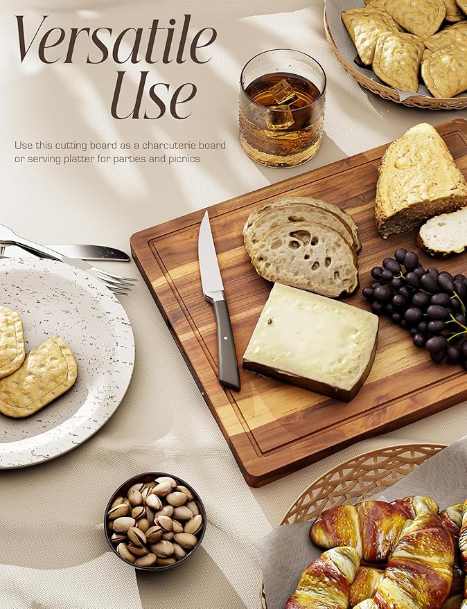 - Multi-Purpose Use: Not just a pastry board or prep surface, remove the lip to transform it into a large serving platter or wooden charcuterie board. It’s also reversible, functioning as a beautiful noodle board or flat display when needed. An adaptable teak cutting boards for kitchen setups that is both practical and elegance