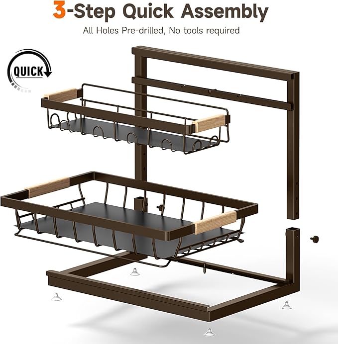 - 【Durable & Easy to Clean】Sevenblue under sink organizers and storage made from premium carbon steel, this organizer can support up to 50 lbs of weight. Its surface is coated with a baked finish, making it rust-resistant, stylish, and stain-free. Cleaning is effortless—simply wipe it with a damp cloth.