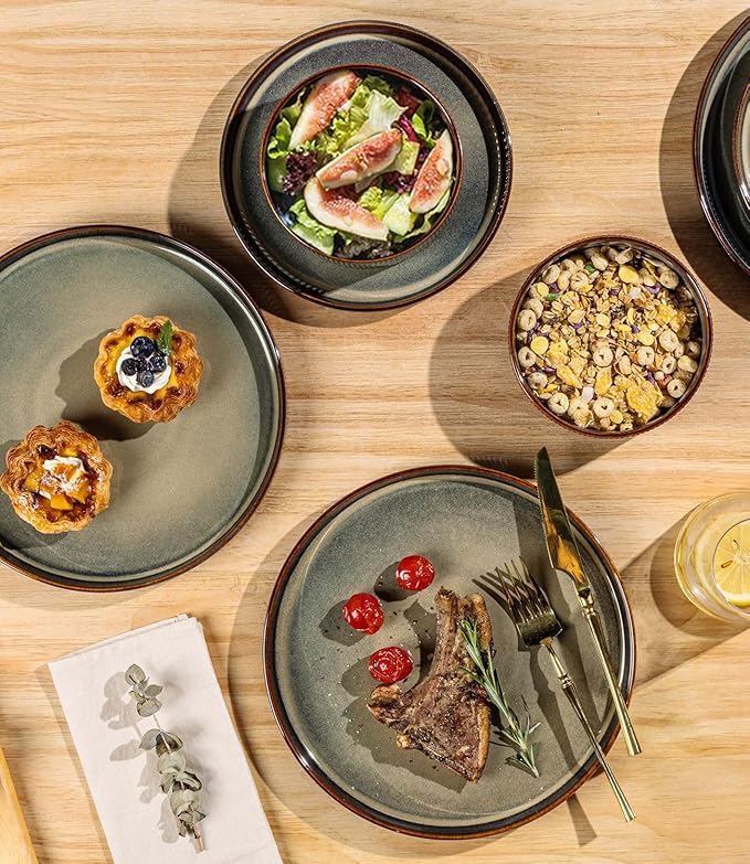 - HANDCRAFTED WITH UNIQUE BEAUTY: Every plate and bowl in our collection is expertly handcrafted by skilled artisans, showcasing the beauty of traditional craftsmanship. The pieces are finished with a Double Reactive Glaze, which creates a unique, rich color that varies slightly with each item. This ensures that every set is distinct, adding a personal touch to your dining experience.