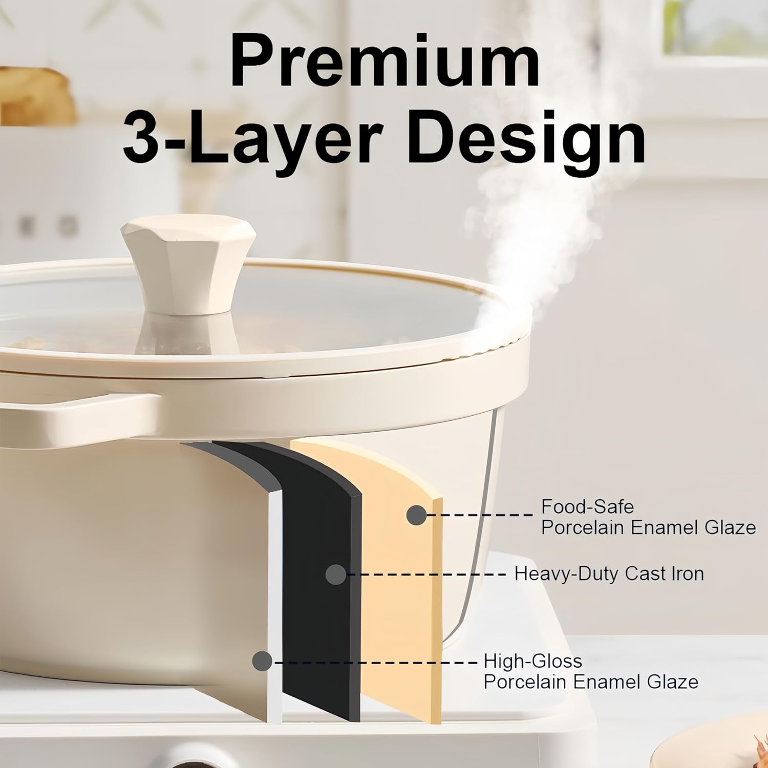 - Ceramic Iron Cast Nonstick Dutch Oven Pot with Glass Lid free of PTFE, PFAS, PFOA, PFOS, lead, cadmium that can leach into food.Naturall Nonstick - Ceramic nonstick material is healthier than Teflon and scratch-resistant with excellent food release. Only less oil is needed for cooking, for a healthy, low-fat diet.