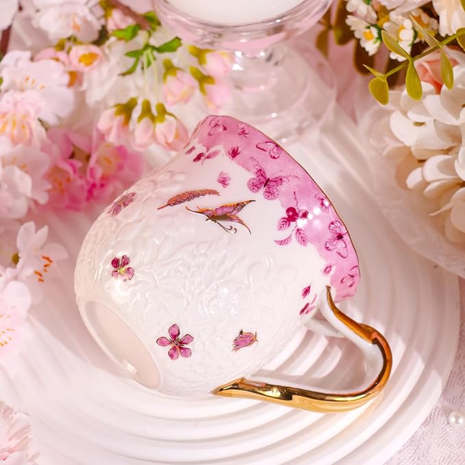 - 【Elegant Aesthetics】Featuring intricate embossed floral motifs that create a lifelike, three-dimensional "Secret Garden" effect, transforming this ceramic coffee mugs set into a handheld work of art. The gilded rim and handle elevate its luxurious appeal, adding sophistication to your daily rituals.Not suitable for microwave, oven, or dishwasher use.