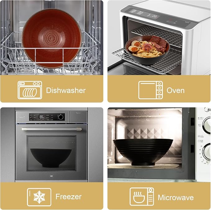- Premium Quality & Safety: Crafted from high-quality, lead-free, and cadmium-free ceramic, our ramen bowls ensure a non-porous surface that resists food odors, stains, and impurities. Enjoy your meals without worrying about toxic chemicals leaching into your food. These bowls are healthier and safer than melamine alternatives.
