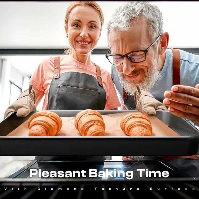 - Premium Ceramic Nonstick Coating: The baking set boasts a top-tier ceramic nonstick coating inside and out, complete with a stylish diamond pattern inside. Say goodbye to sticky cakes, cookies, and muffins with this innovative design