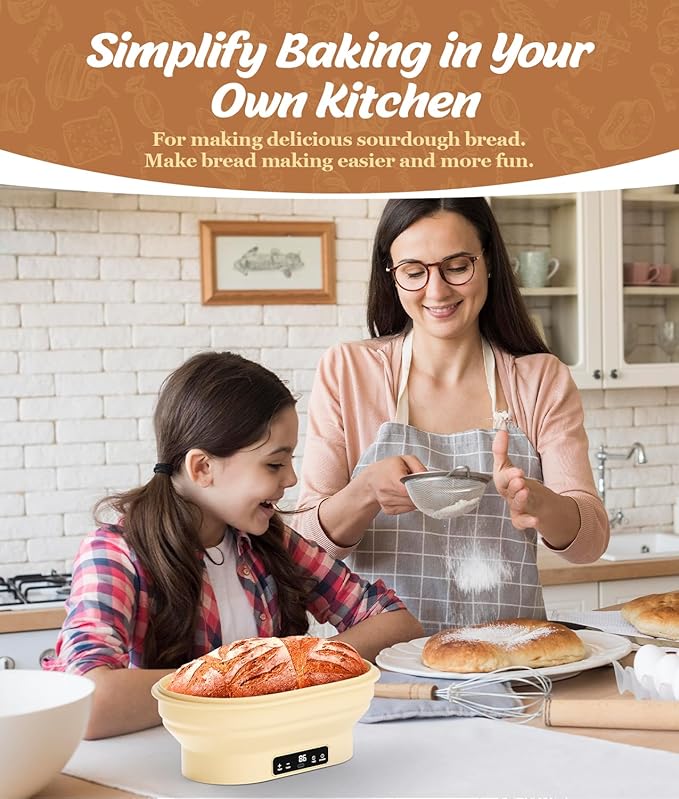 - All-in-One Sourdough Starter Kit for Perfect Baking: This complete sour dough starter kits includes everything you need for effortless sourdough bread baking, from an electric proofing basket to essential tools like a dough scorer, scraper, and bread bags—all designed to streamline your baking process. The included step-by-step guide teaches you how to feed your sour dough starter and craft artisanal loaves with ease, making it the ultimate gift for home bakers.