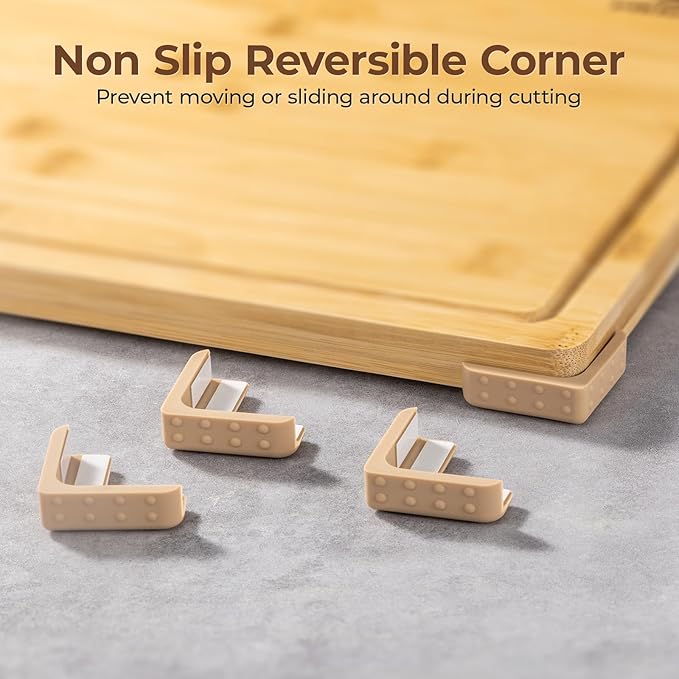 - Stable Cutting and Countertop Protection: With non-slip pads on the bottom, the cutting board stays firmly in place on the countertop. This prevents accidents and protects your countertop from scratches caused by sliding during use. It also helps prevent warping and deformation of the cutting board