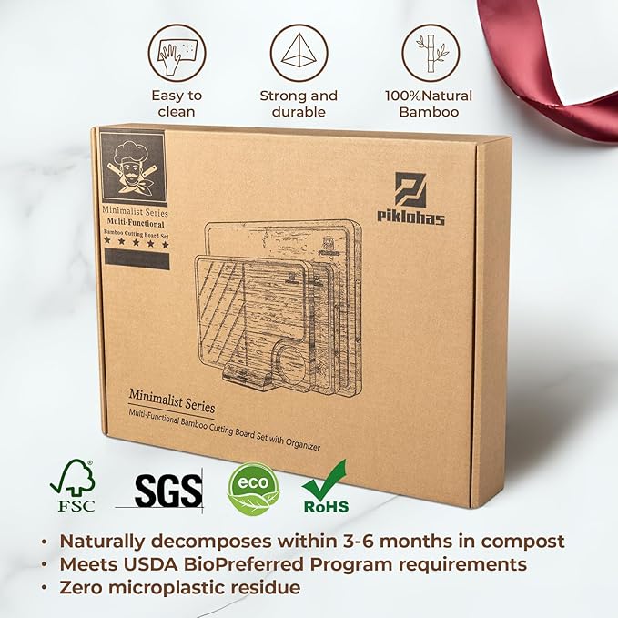 - 100% Natural Bamboo: These cutting boards are crafted from sustainably sourced moso bamboo (Phyllostachys edulis) – a fast-growing, renewable species. Known for its exceptional strength and durability, this premium bamboo offers a stylish and eco-friendly addition to your kitchen