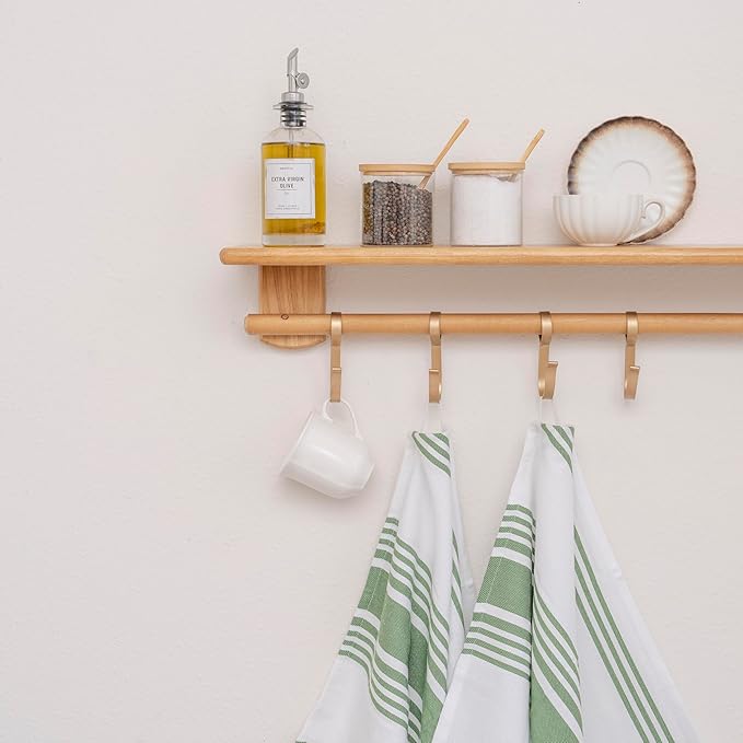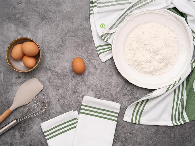 - A Touch of Timeless Style with a Convenient Hanging Loop –– These absorbent kitchen towels aren't just functional; they're a statement of refined taste and sophistication. The classic stripe design complements any kitchen decor. With the added convenience of hanging loops, these 100% cotton kitchen towels are always within arm's reach and ready to assist you