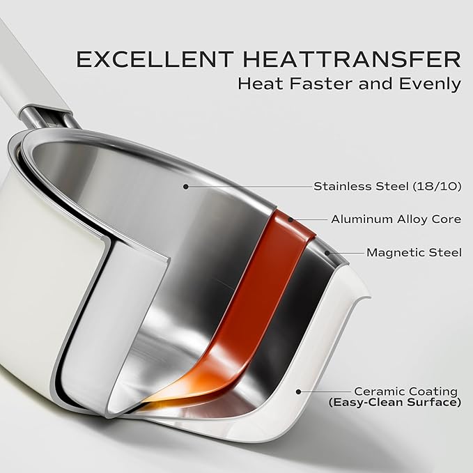- Versatile & Durable Construction: Engineered to outperform standard pots, this saucepan features a triple-layer construction (18/10 stainless steel, aluminum core, and magnetic base) for rapid heating on all stovetops. The thickened base prevents warping, whether you’re simmering sauces or boiling milk.