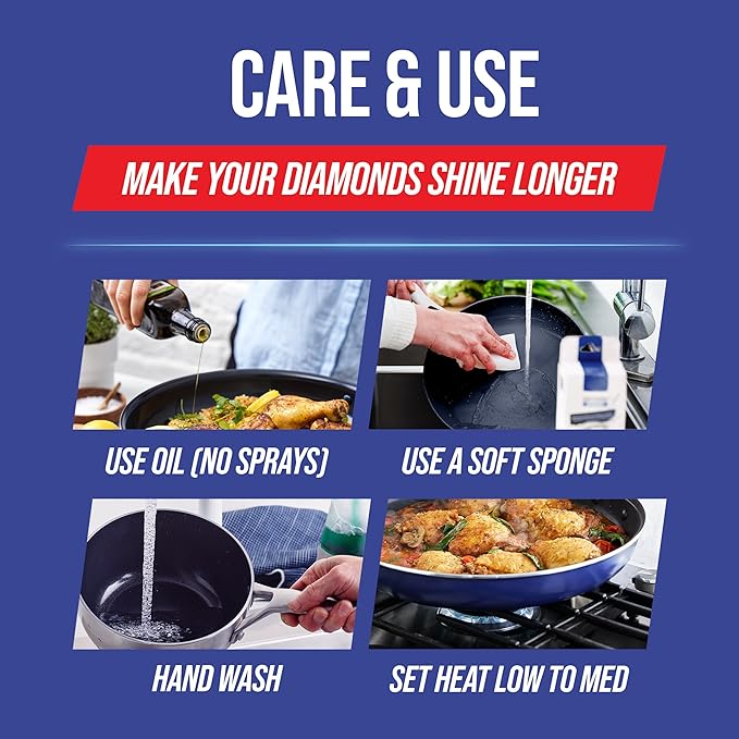 - DIAMOND-TOUGH EXCELLENCE: Metal utensil safe surface with diamond-infused ceramic nonstick - 5x harder and 10x longer lasting than traditional coatings. Tough enough for your toughest recipes!