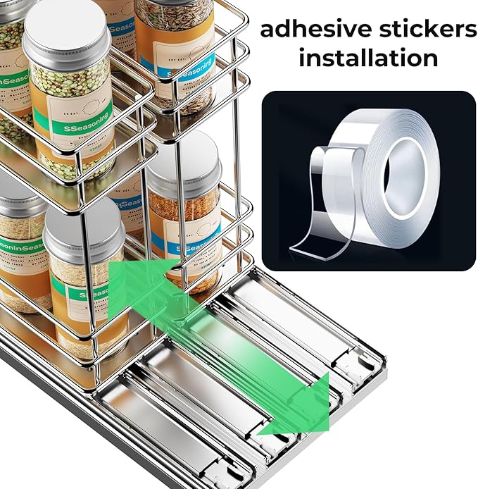 - 【Dual Slide Rails】Unlike other under cabinet spice rack that only have one slide rail, Mystozer vertical spice rack has two slide rails so you can pull out each layer independently.This unique design not only makes the spices in each layer more stable when sliding out, but also perfectly organized for your spices.
